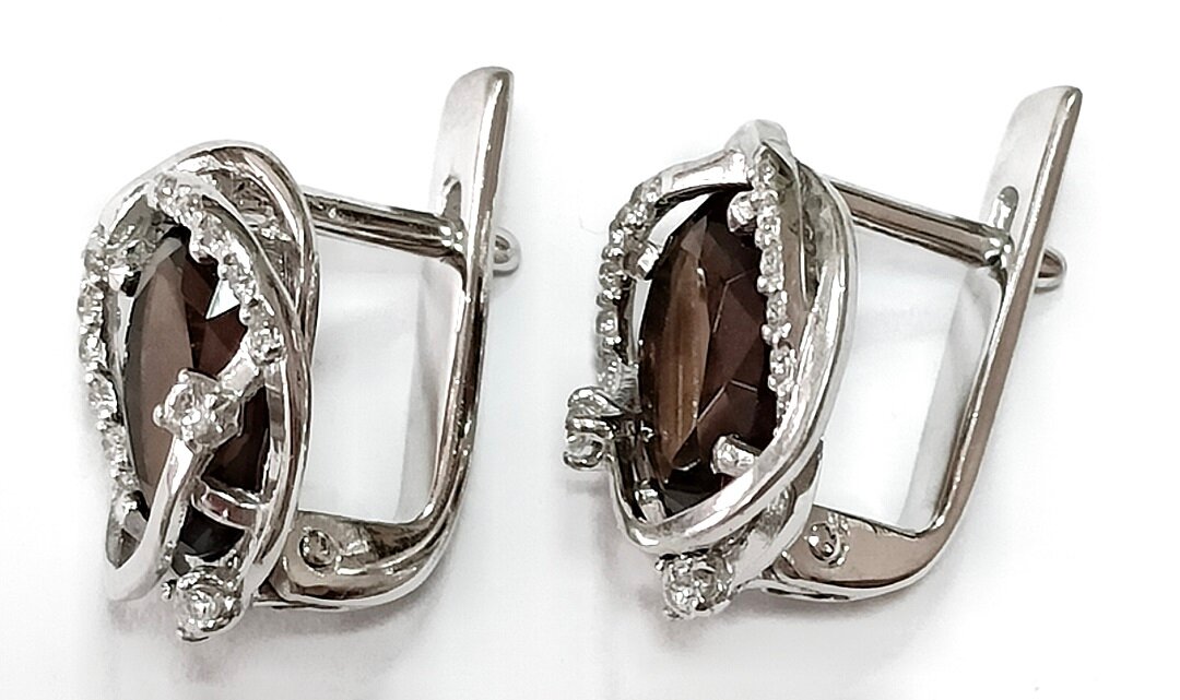 Серьги выполнены из серебра 925-й пробы, что гарантирует высокое качество и долговечность изделия. Отделка серег выполнена методом родирования, что придает им блеск и защищает от царапин и потертостей.