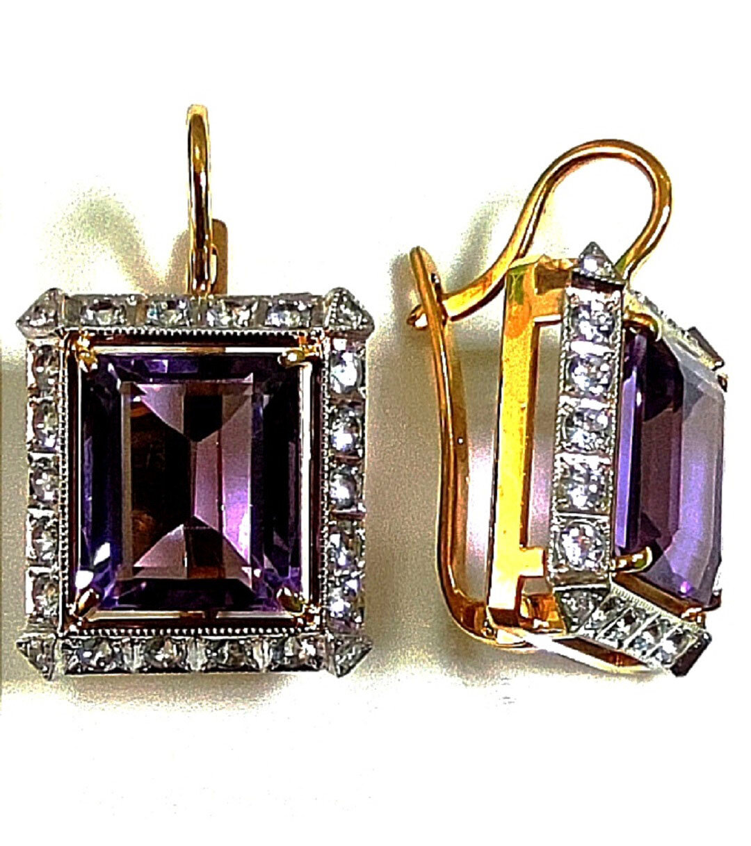 Ювелирные серьги Эстерелла золото 750, аметисты, бриллианты .