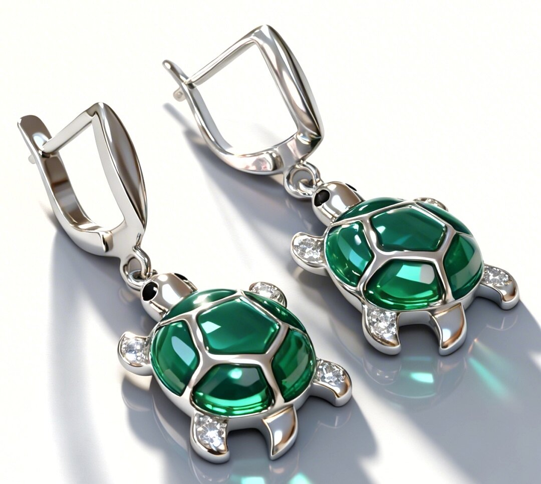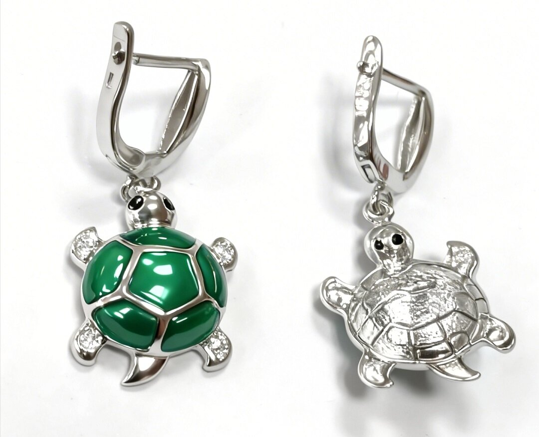 Ювелирные серьги из серебра 925 пробы с эмалью "Черепаха" представляют собой изысканное и стильное украшение, которое станет прекрасным дополнением к вашему образу.