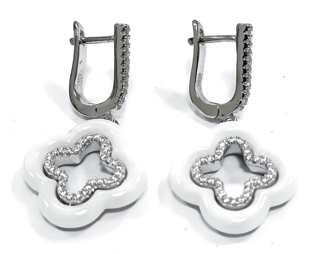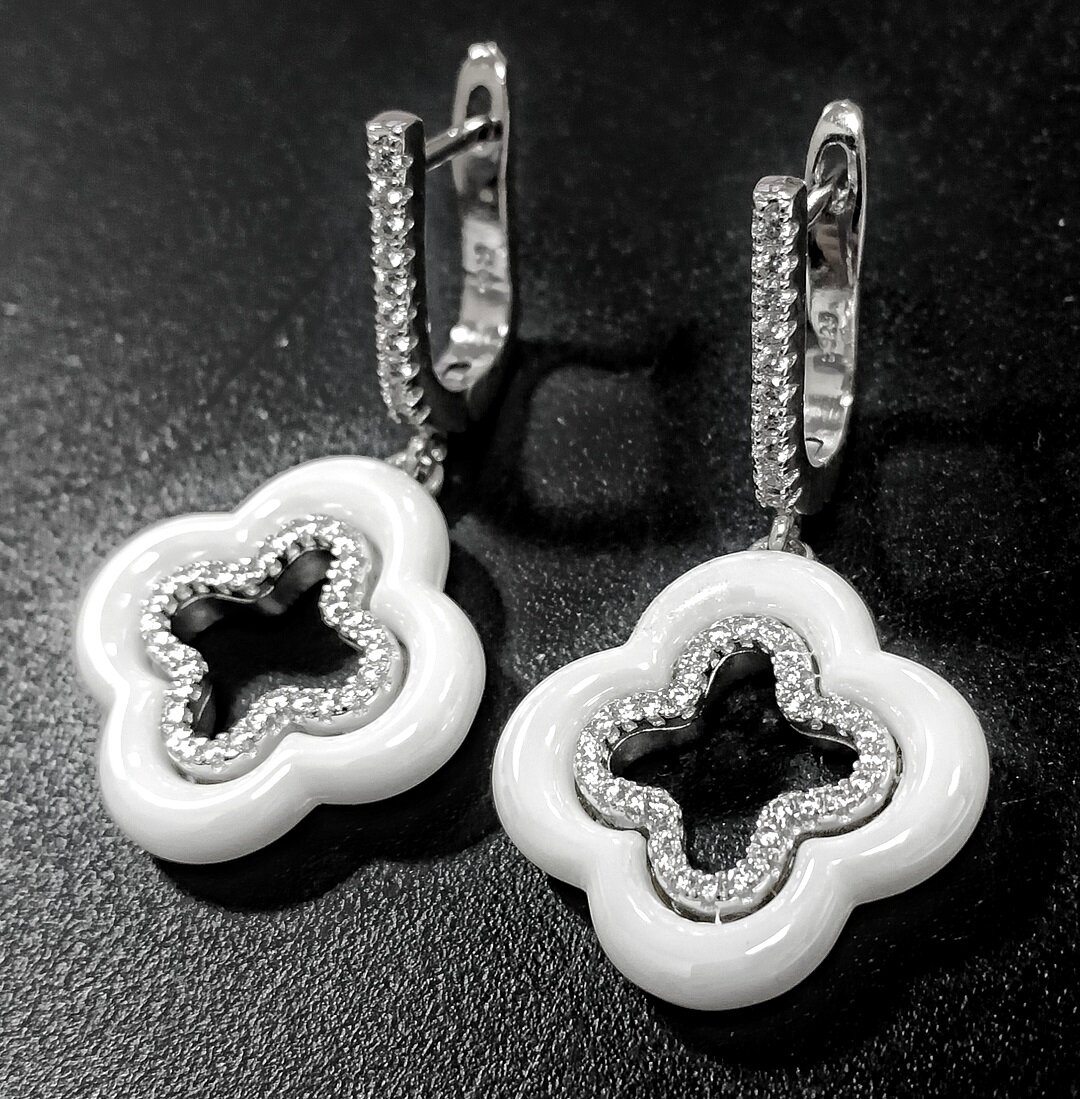 Ювелирные серьги из серебра 925 пробы с керамикой и фианитами представляют собой изысканное и стильное украшение, которое станет прекрасным дополнением к вашему образу.