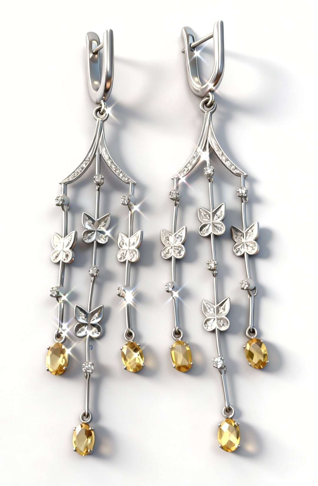 Модель с подвесками придает серьгам особый шарм и элегантность. Подвески из цитрина и фианитов добавляют изысканности и блеска, делая украшение еще более привлекательным.