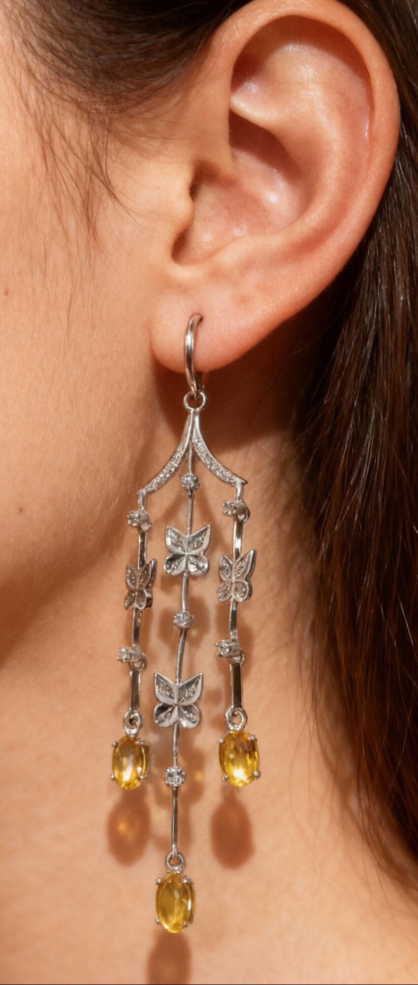 Ювелирные серьги из серебра 925 пробы с подвесами и вставками цитрин и фианиты представляют собой изысканное и стильное украшение, которое станет прекрасным дополнением к вашему образу.