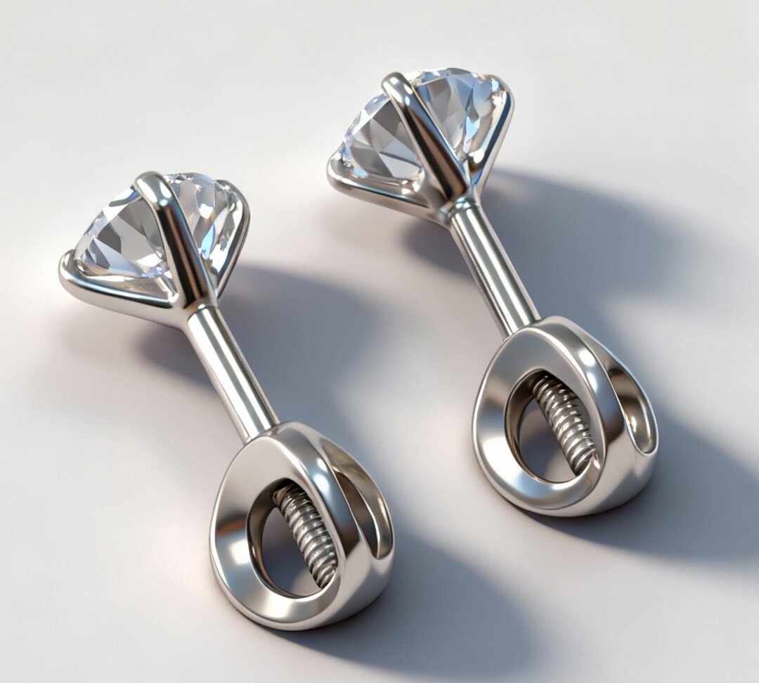 Замок типа "штифтовый" обеспечивает надежное крепление сережек и предотвращает их случайное выпадение.