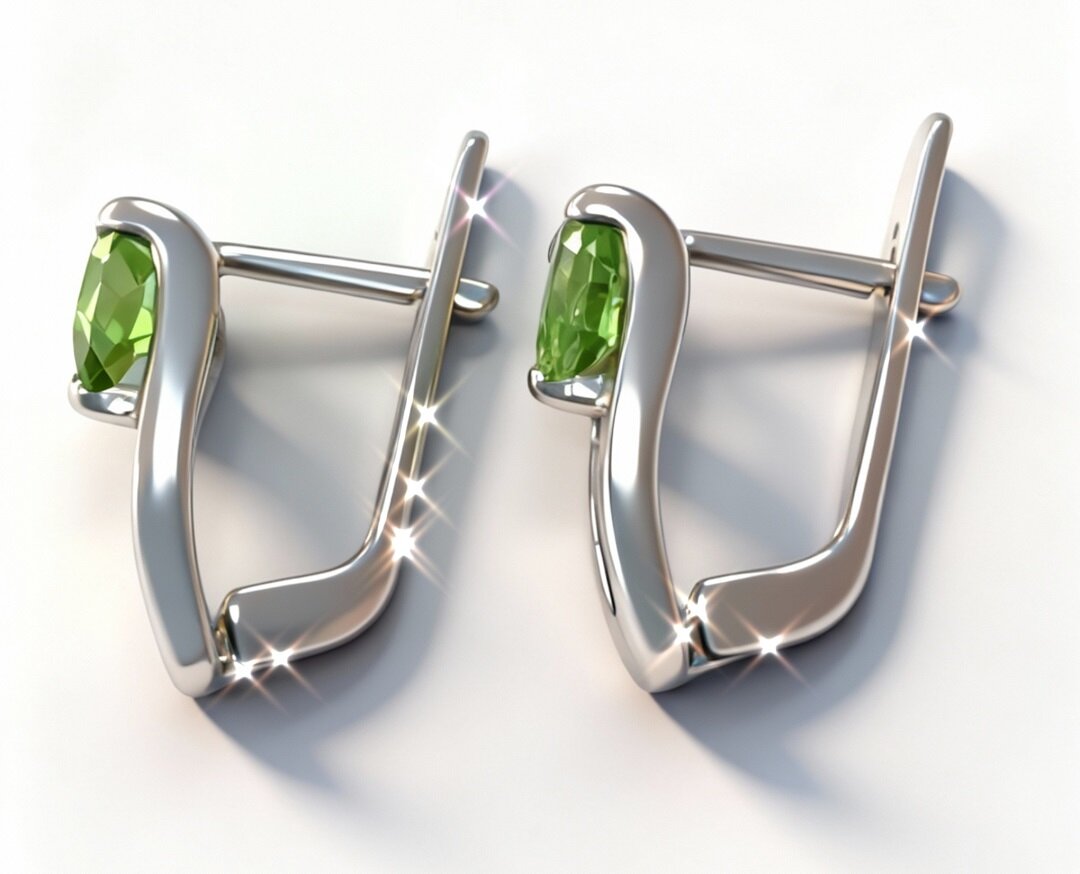 Ювелирные серьги из серебра 925 пробы с хризолитом - элегантное и стильное украшение, которое станет прекрасным дополнением к вашему образу.
