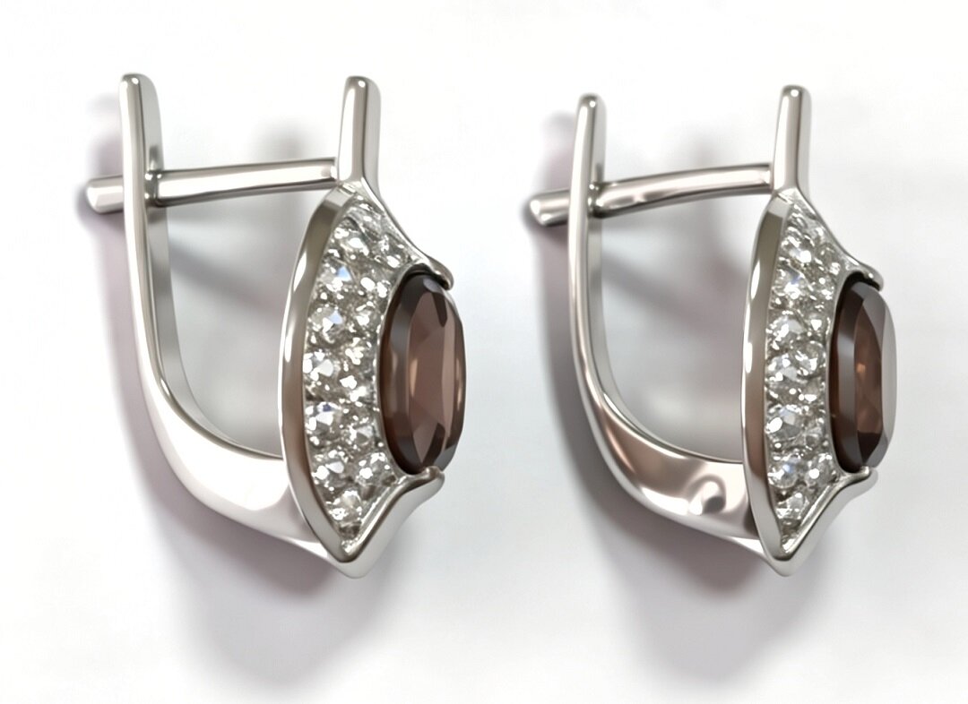 Ювелирные серьги из серебра 925 пробы с раух-топазом и фианитами - это изысканное и стильное украшение, которое подчеркнет вашу индивидуальность и добавит шарма вашему образу. Серьги изготовлены из качественного серебра 925 пробы, что гарантирует их долговечность и сохранность внешнего вида на протяжении долгого времени. Раух-топаз - это полудрагоценный камень, который обладает уникальным дымчатым оттенком и блеском. Он придаст вашему образу глубину и загадочность, а также станет ярким акцентом в вашем образе. Фианиты - это искусственные камни, которые обладают блеском и игрой света, что делает их еще более привлекательными в глазах окружающих. Они добавят блеска и сияния вашим серьгам, делая их еще более заметными и привлекательными. Размер украшения составляет 1.8 см, что делает его удобным для ношения и подходящим для любого случая. Выбирайте ювелирные серьги из серебра 925 пробы с раух-топазом и фианитами от Эстерелла и наслаждайтесь своим неповторимым образом каждый день!