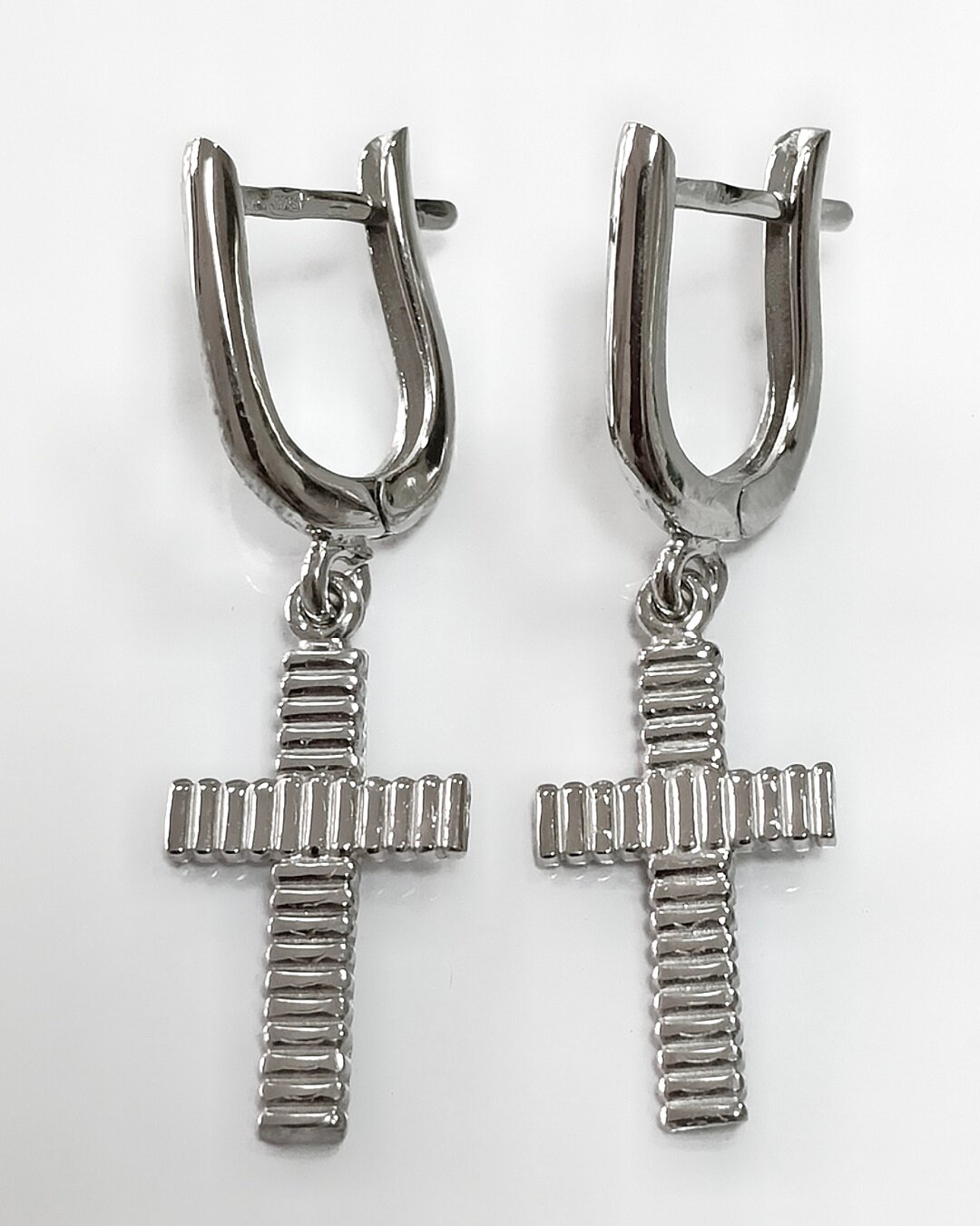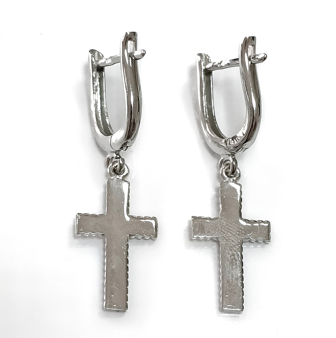 Модель с подвесками и тематикой крестов делает эти серьги уникальными и оригинальными.