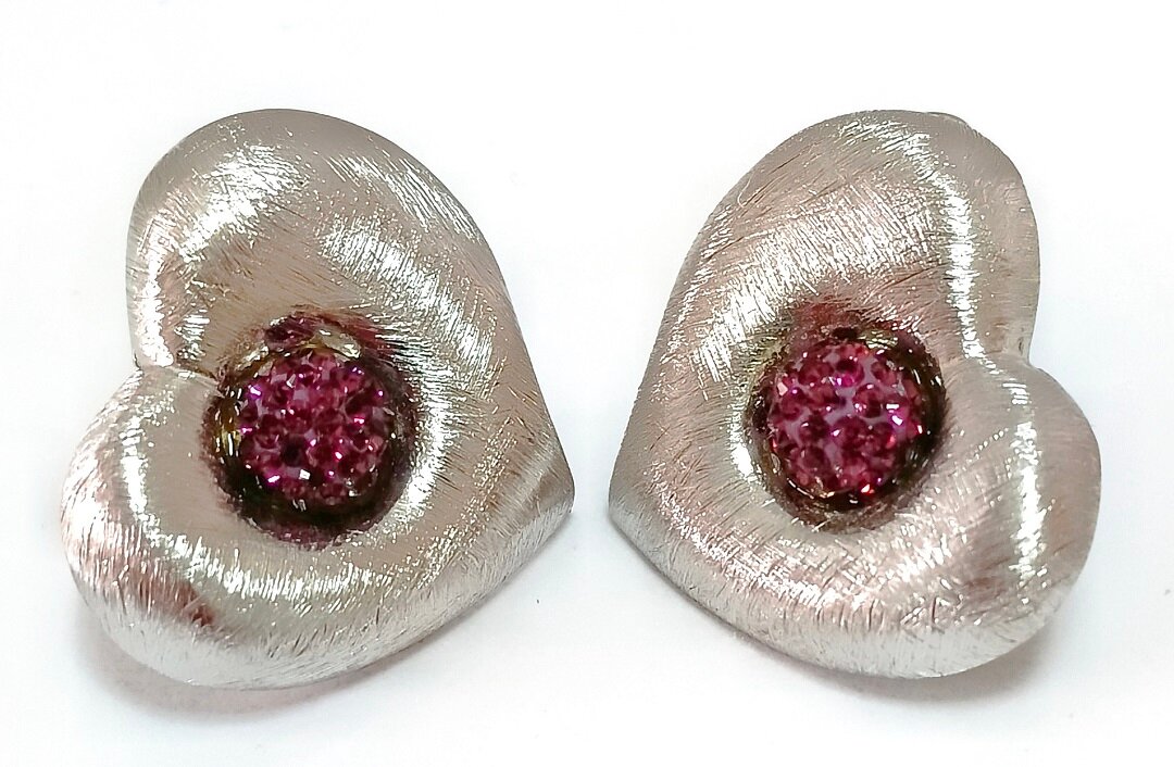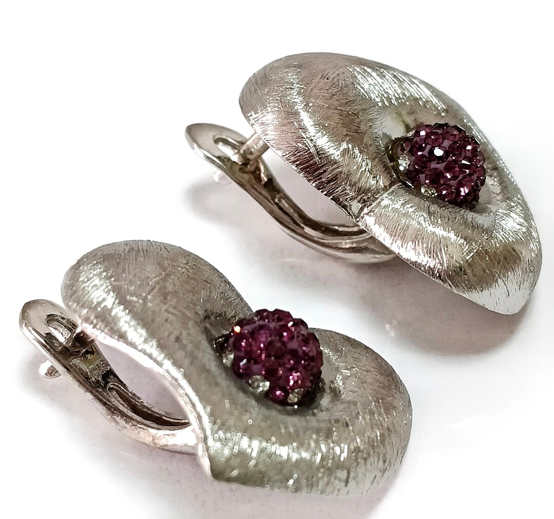 Серьги выполнены в форме сердца, что придает им уникальный и неповторимый вид. Отделка родированием придает изделию блеск и защищает его от царапин и потертостей.