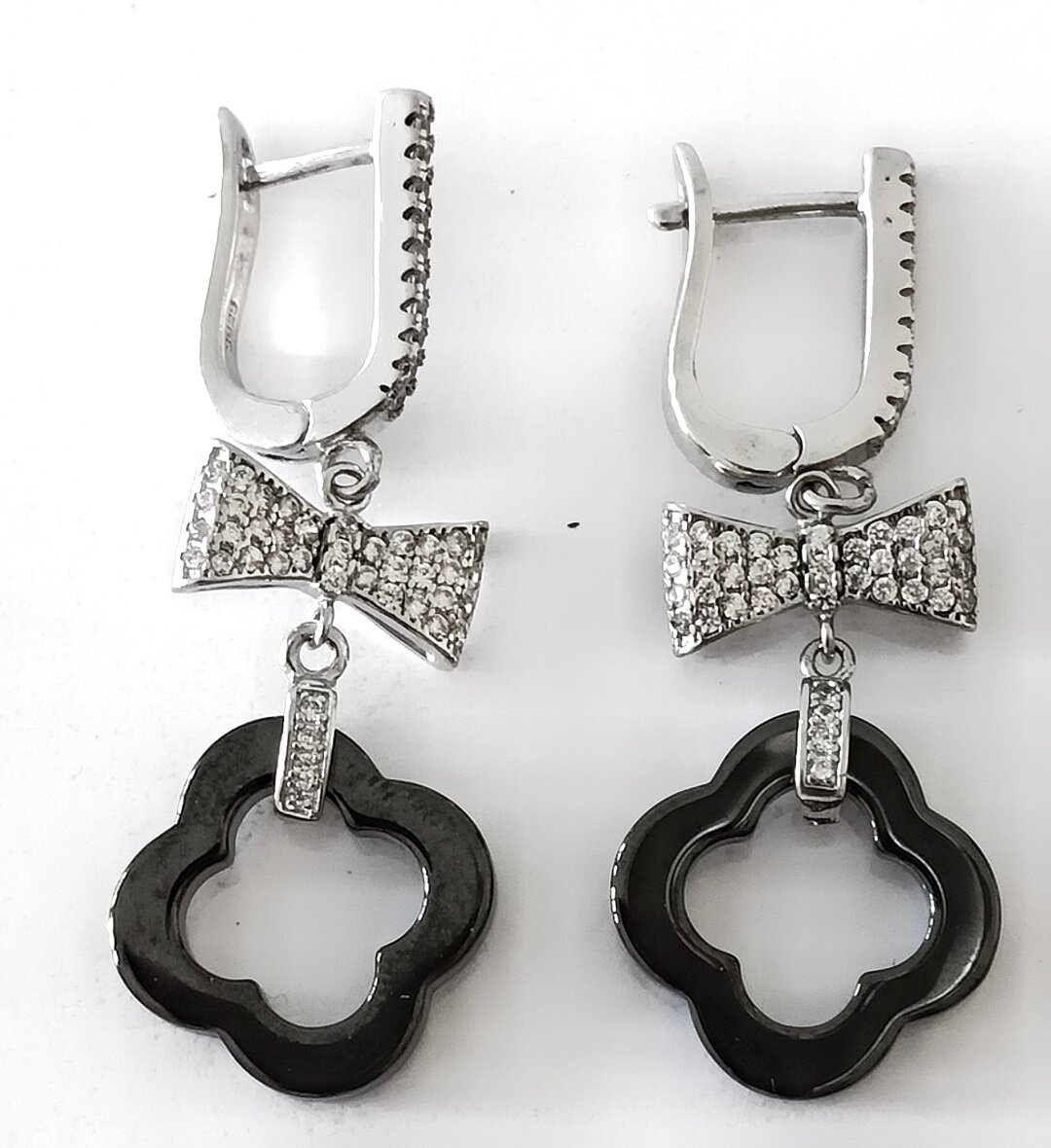 Модель с подвесками и вставками из черной керамики и фианитов делает эти серьги уникальными и стильными. Черная керамика придает изделию глубину и загадочность, а фианиты добавляют блеск и сияние.