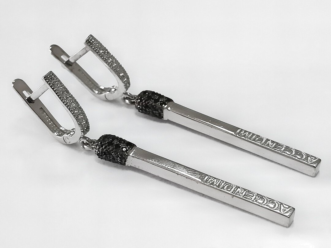 Модель "Спички" отличается оригинальным дизайном с подвесками, что делает ее уникальной и запоминающейся. Размер украшения составляет 5,3 см в длину и 3 мм в ширину, что делает их комфортными для ношения.