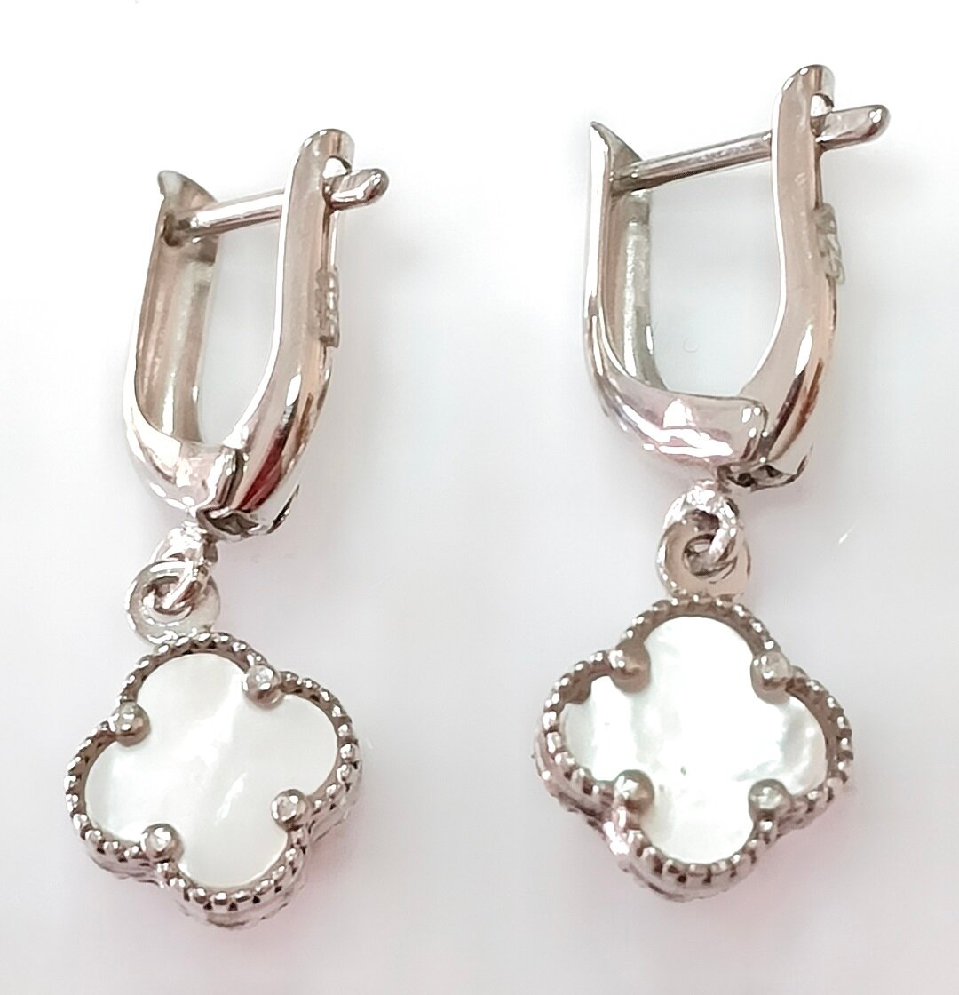 Серьги выполнены в виде подвесок с перламутровыми вставками, что придает им особый шарм и элегантность. Размер украшения составляет 2.2 см, что делает их заметными, но в то же время не вызывающими.