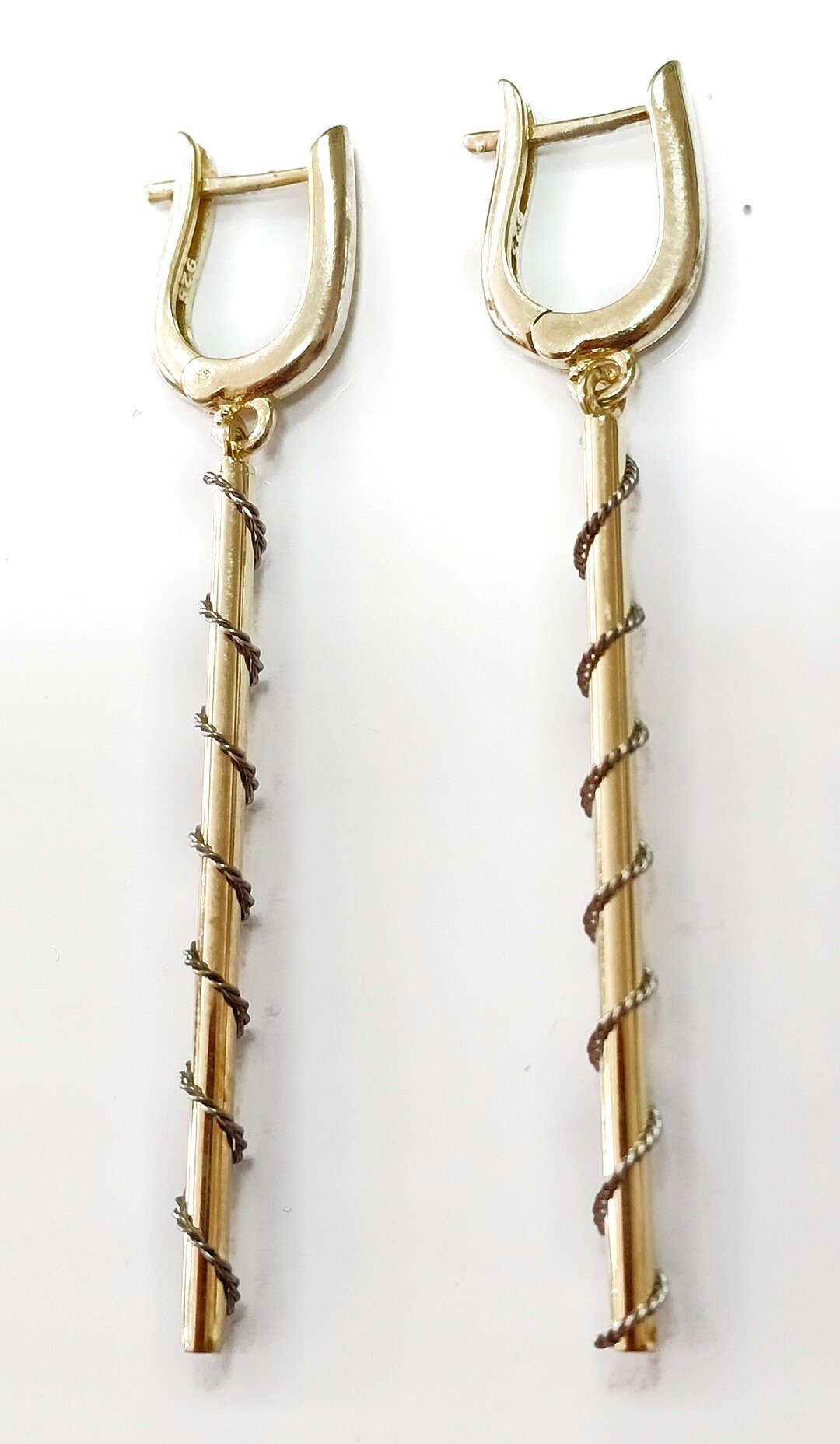 Серьги имеют размер 5.8 см, что делает их заметными, но в то же время не перегружает образ.