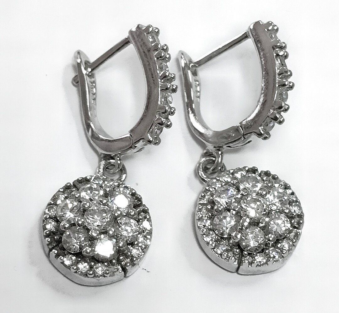 Украшение украшено фианитами, которые придают ему блеск и сияние. Фианиты – это искусственные камни, которые по своим оптическим свойствам не уступают бриллиантам. Благодаря этому серьги с фианитами выглядят роскошно и элегантно.