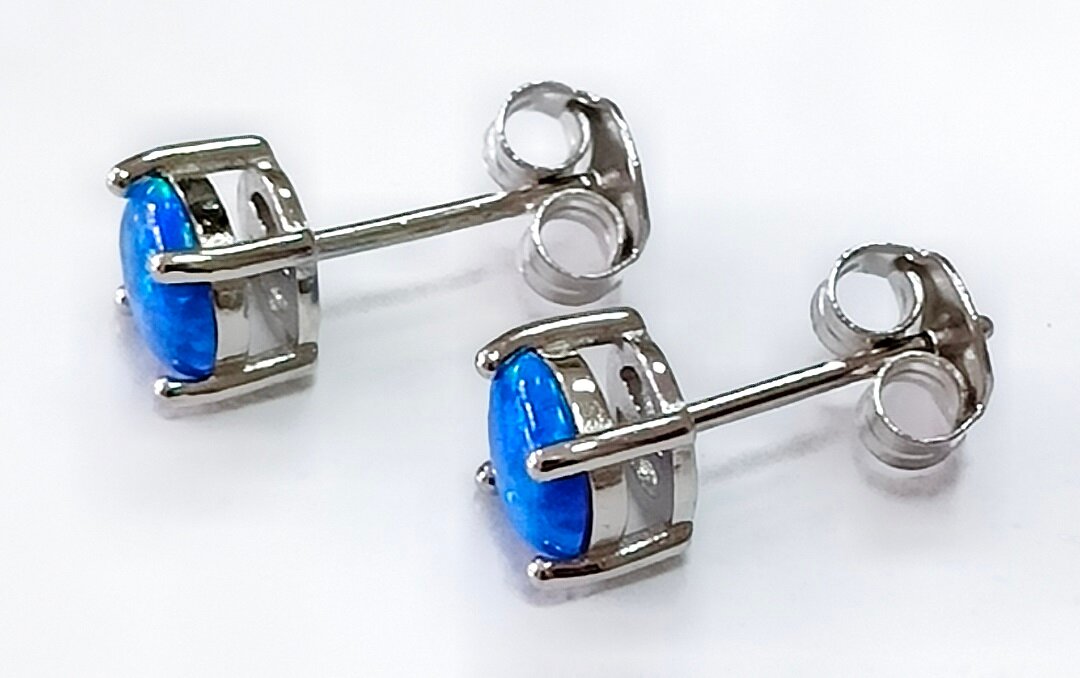 Серьги украшены синтетическим опалом круглой формы, который придает изделию особый шарм и элегантность. Вставка выполнена в форме круга, что делает украшение еще более привлекательным и заметным.