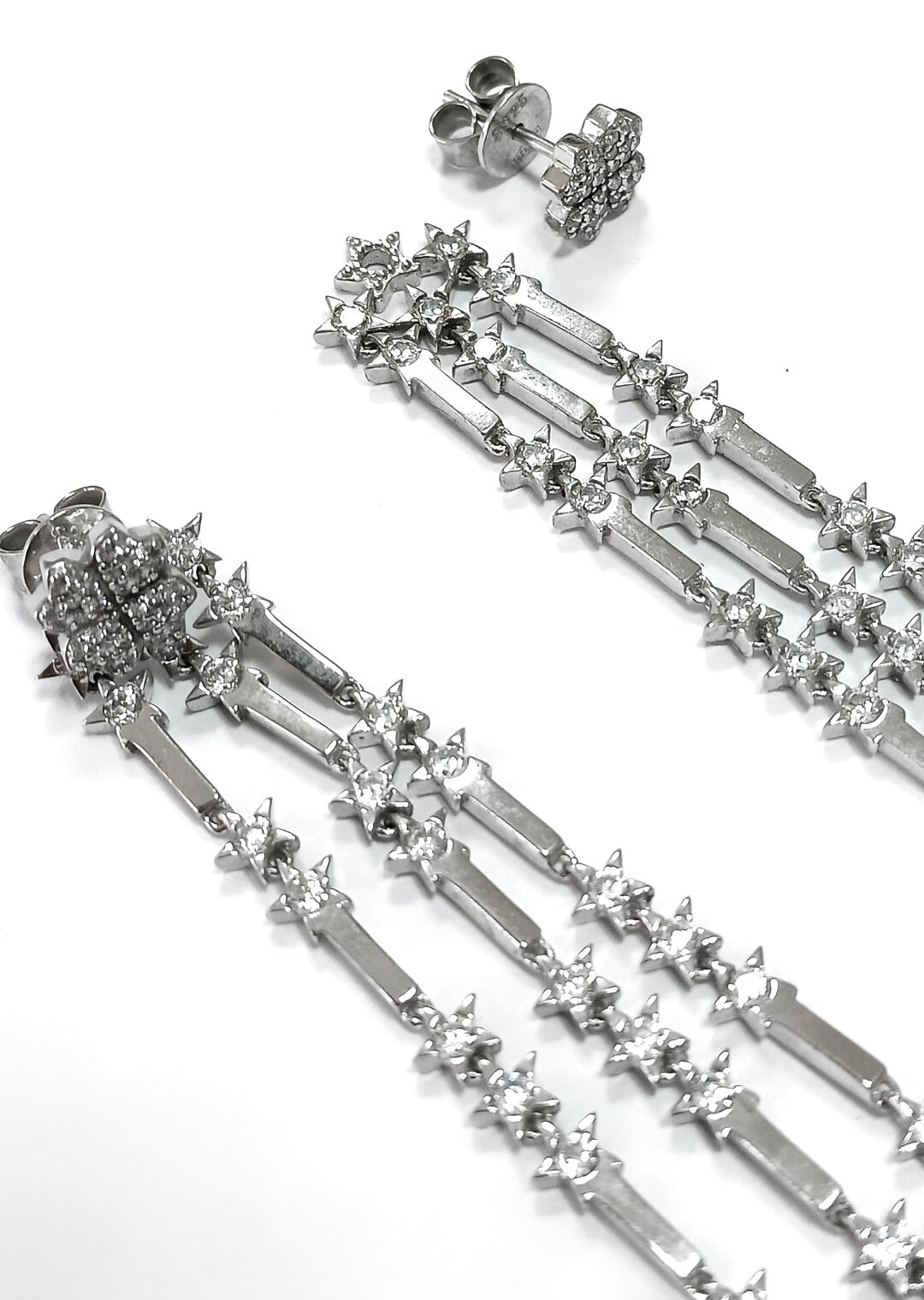 Ювелирные серьги-пусеты из серебра с подвесами и вставками из фианитов представляют собой изысканное и стильное украшение, которое станет прекрасным дополнением к вашему образу.