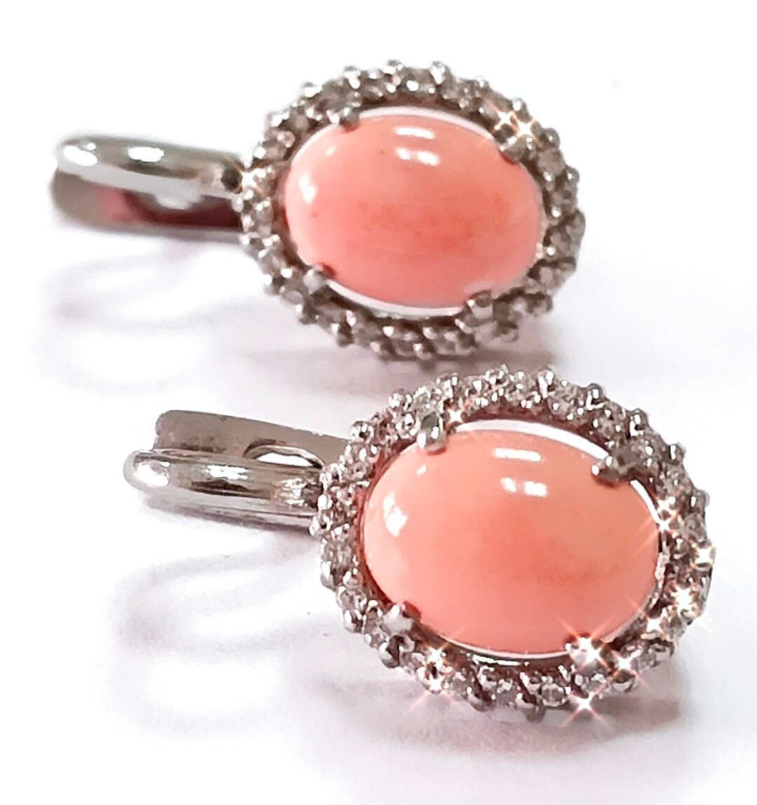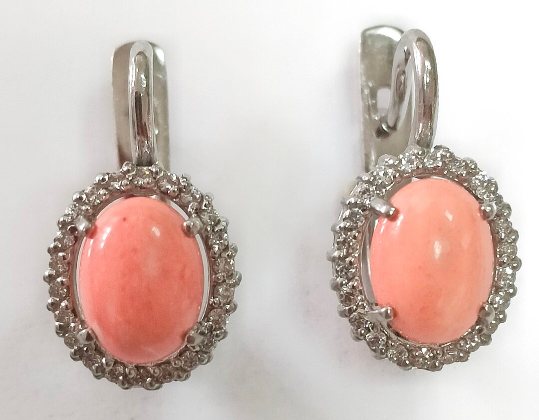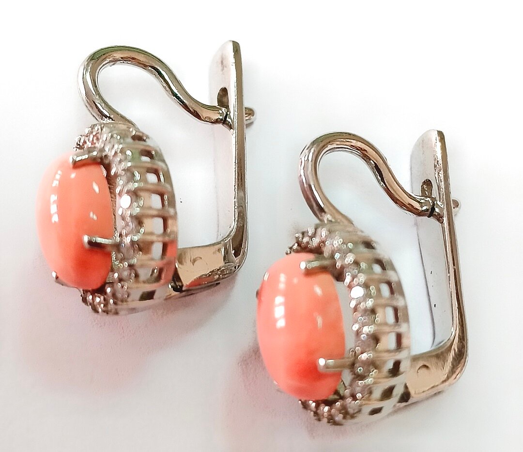Элегантные серьги Эстерелла украшены синтетическим кораллом овальной формы и фианитами. Вставка из коралла придает изделию неповторимый шарм и делает его уникальным. Фианиты добавляют блеск и сияние, делая серьги еще более привлекательными.