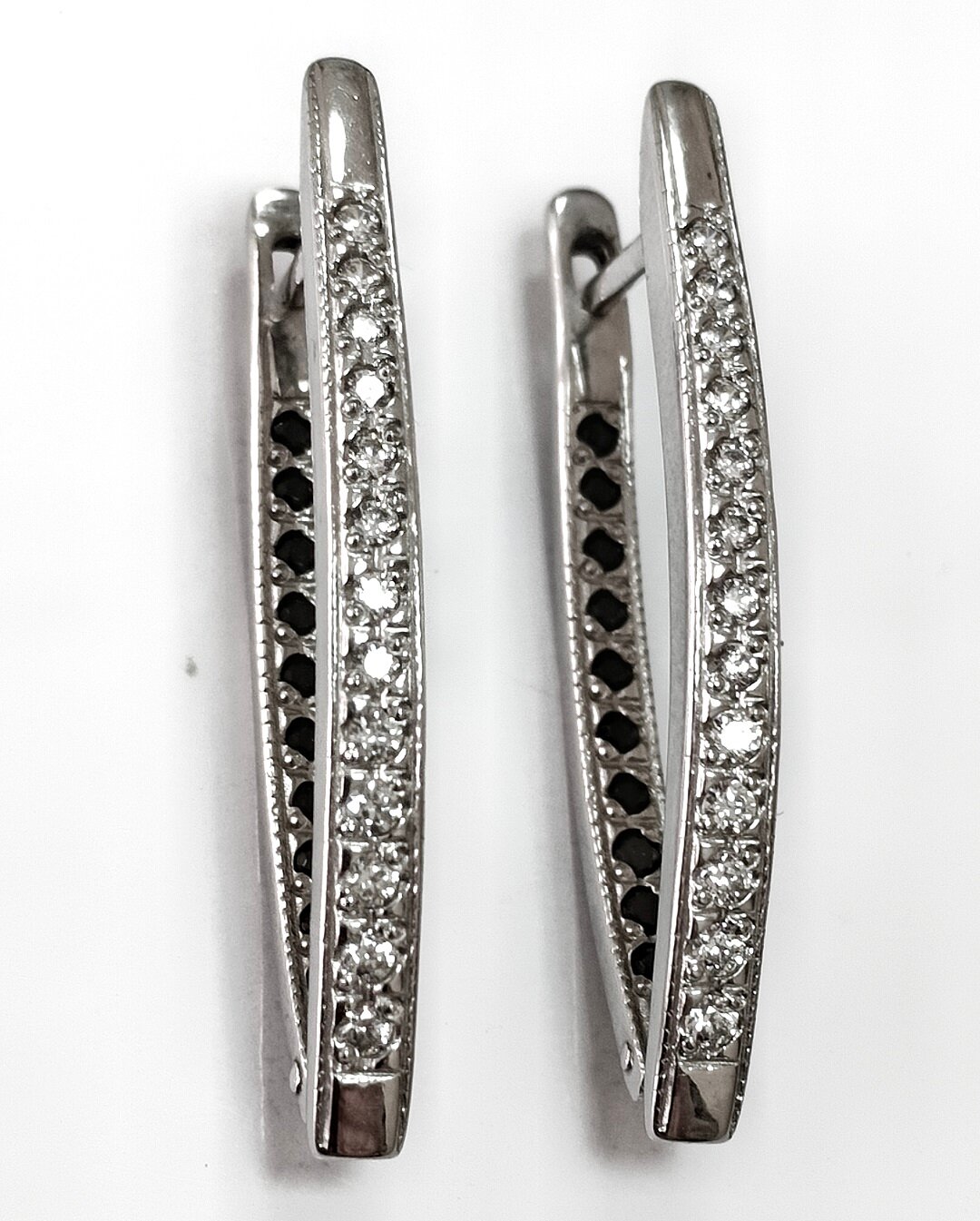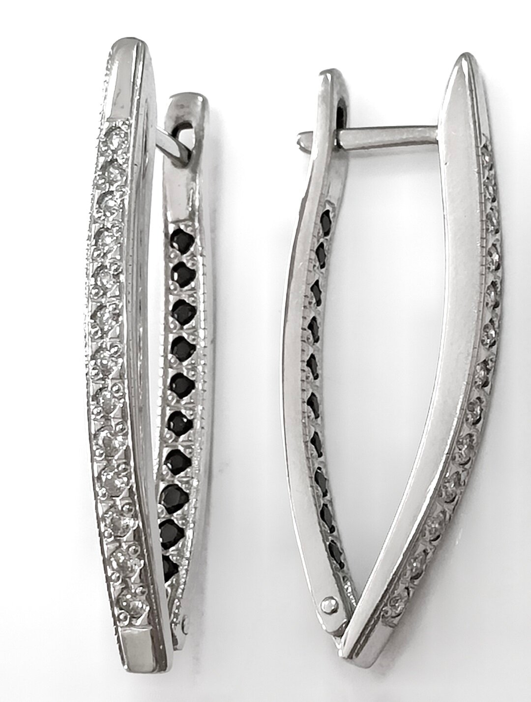 Двусторонние серьги Эстерелла украшены вставками из черного и белого фианита, которые придают изделию особый шарм и блеск.