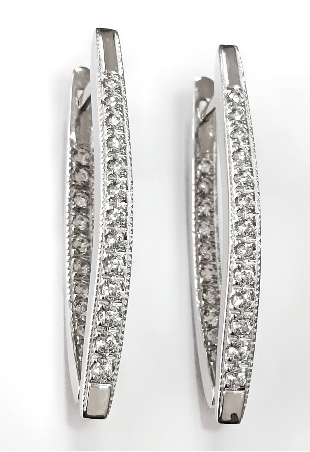 Особенностью этих серег является двусторонний дизайн, что позволяет сочетать их с различными нарядами и аксессуарами. Отделка серег выполнена методом родирования, что придает им блеск и защищает от царапин и потертостей.
