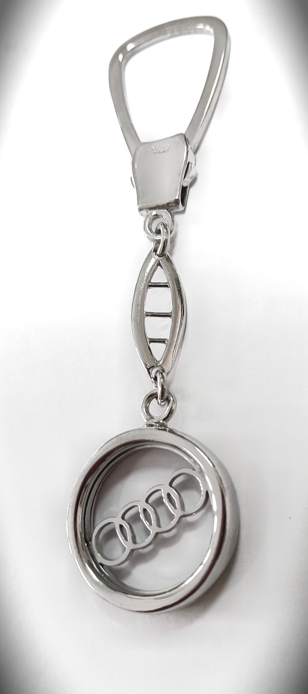 Особенностью брелока является отделка родированием, которая придает изделию блеск и защищает его от царапин и потертостей.