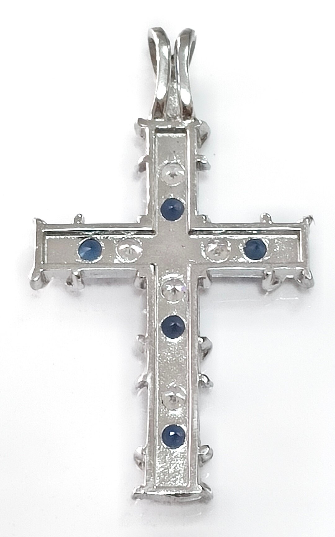 Вставка из синего фианита придает украшению особый шарм и элегантность.Диаметр креста 1,9 см