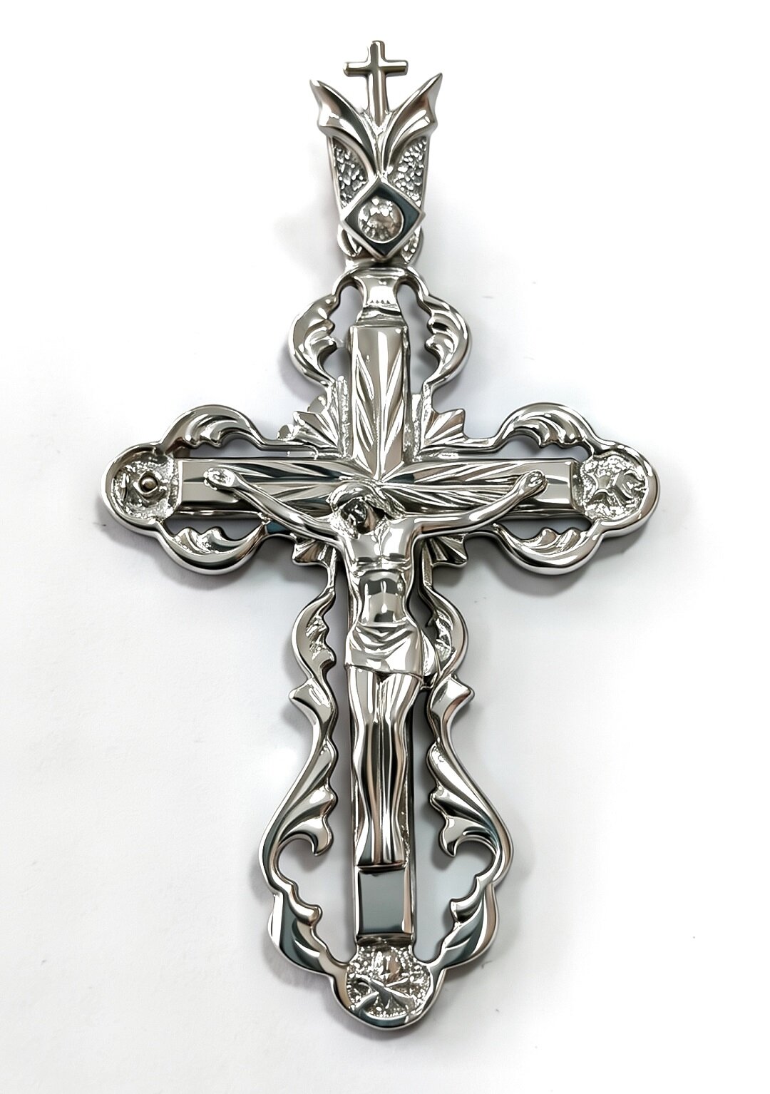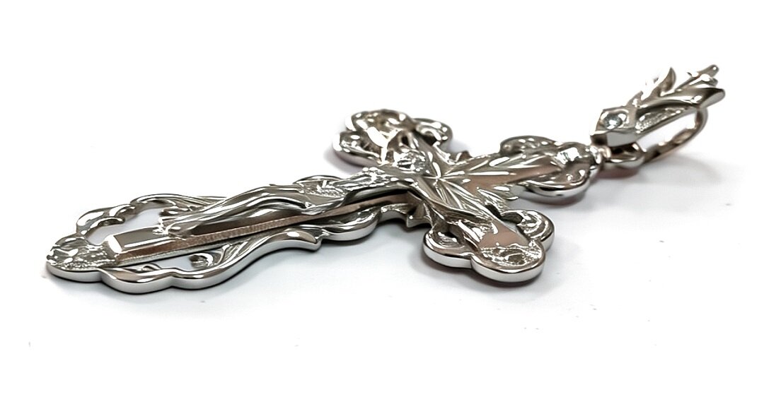 Ювелирный крест из серебра 925 пробы с фианитовой вставкой - это изысканный и стильный аксессуар, который станет прекрасным дополнением к вашему образу. Серебро 925 пробы гарантирует высокое качество и долговечность изделия. Благодаря этому, крест будет радовать вас своим внешним видом на протяжении многих лет. Вставка из фианита придает украшению блеск и сияние. Фианит - это синтетический камень, который по своим свойствам не уступает природному бриллианту. Он устойчив к царапинам и не теряет своего блеска со временем. Крест выполнен в классическом стиле, что позволяет сочетать его с различными нарядами и аксессуарами. Выбирая ювелирный крест из серебра 925 пробы с фианитовой вставкой, вы получаете не только стильный аксессуар, но и качественное изделие, которое будет радовать вас своим внешним видом и функциональностью на протяжении многих лет.