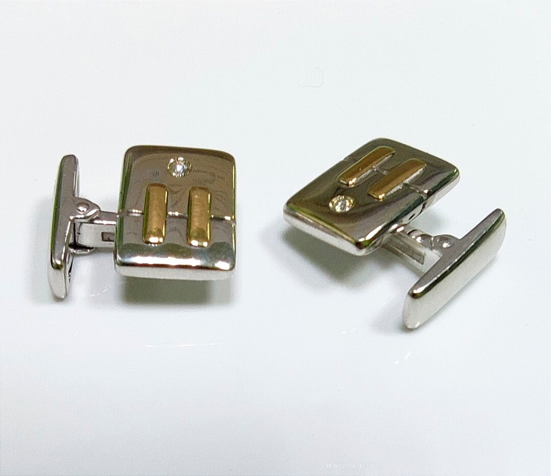 Запонки украшены бриллиантами, что придает им особый шик и блеск. Благодаря этому аксессуару, ваш образ будет выглядеть еще более элегантно и дорого.